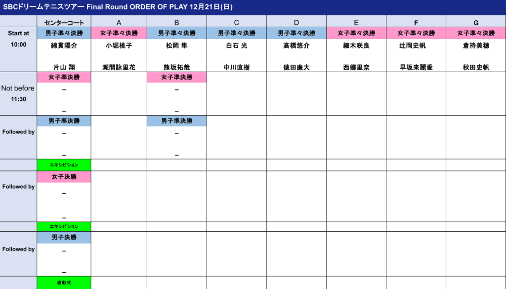 TOP > ニュース > 12月20日の試合結果と、21日のOrder of play
